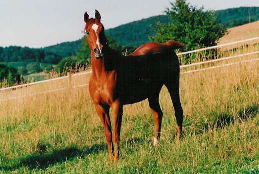 Sieger- und Reserve-Champion-Stute, prämiert an Beständeschau. Keshma - athletisch und sehr rittig - führt über ihren ganggewaltigen Vater Kosmonaut (Naftalin x Karinka) das wertvolle Leistungsblut von Priboj > Topol. Kosmonaut, Schauchampion und überaus harter Leistungshengst, lief bei bester Gesundheit vier Jahre lang mit Spitzenplazierungen insgesamt 19 Rennen. Er war zu Lebzeiten ein gefragter Beschäler in der Trakehner-Zucht, wo er bereits aus seinen ersten Fohlenjahrgängen zwei in Neumünster gekörte Söhne sowie mehrere Prämienstuten stellte - ein absolutes Novum. Keshma ist eine von nur drei AV-Töchtern von Kosmonaut und ist somit eine Rarität.