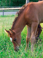 Das erste Fohlen dieser typvollen Stute kann als überaus gelungen und vielversprechend bezeichnet werden! Das edle, kleine Hengstlein mit dem schönen Kubinec-Gesichtlein und den typisch "russischen Gängen" ist ein richtiger Hingucker! Besitzerin und Züchterin: Danyèle Darbellay.