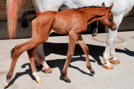 Wir gratulieren unseren Freunden Marina und Ruedi Groner zur Geburt von Munira, einem braunen Stütchen von AJA Shakakhan (FS Bengali x G. Shyamasri von Ibn Estopa) aus ihrer hervorragenden Zuchtstute Mamba (Balaton x Malutka = Salon x Monogramma von Knippel). Munira ist sehr typvoll, elegant und hochbeinig wie alle Kinder von AJA Shakakhan.