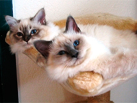 Auch unsere drei bezaubernden heiligen Birma Katzen bescheren uns immer wieder wohltuend schöne Momente. Entzückend auch hier die hingebungsvolle Freundschaft zwischen dem Senior-Kater Arthemis und den beiden Jungkatzen Ocean und Nicolaj; Arthemis hegt und pflegt die beiden Kätzchen als ob's die Seinen wären, spielt und tollt mit ihnen herum und seine grosse Zuneigung wird ganz offensichtlich erwidert!