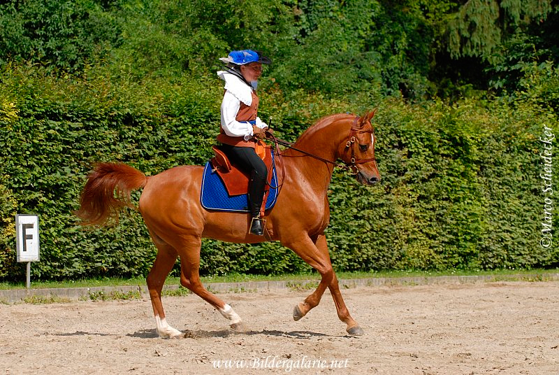 Dies jedenfalls ist der Leitgedanke unserer Zucht. Am Beispiel von Vizrah (Rishah x Versal), Schau-Champion und goldprämiert, kann man sehen, was man mit einem Arabischen Pferd aus unserer Zucht unter dem Sattel so alles anstellen kann.