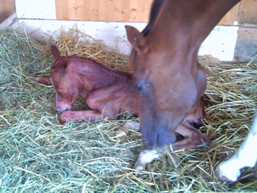 Die schicke Piligrim-Tochter Mulatka hat einem wunderschönen Stutfohlen von Bajkal das Leben geschenkt - eine äußerst bezaubernde, enorm typvolle Zuckermaus mit einem tollen Gangwerk; man wird bestimmt noch von ihr hören! Züchter und Besitzer: Rainer Schmid.