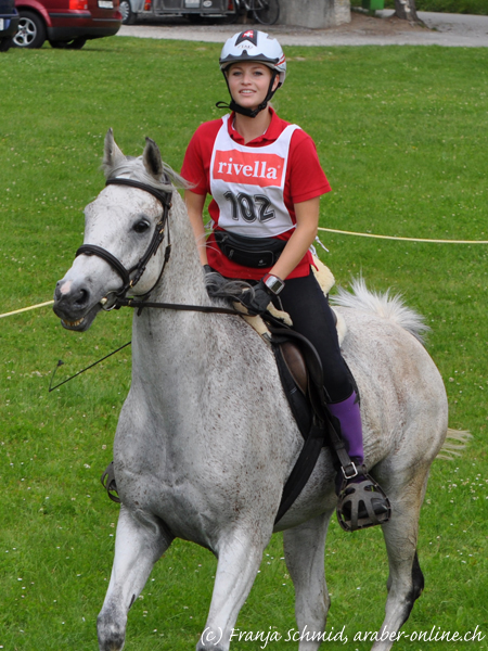 Ghanim v. Gips a.d. Keshma mit seiner strahlenden Besitzerin Frédérique Ernst! Beide haben am 14. April 2012 in Frauenfeld erfolgreich ihren ersten EVG über 30km bestritten. Mit einem Schlusspuls von 34 dürfen wir gespannt auf die nächsten Ritte und Klassierungen sein!