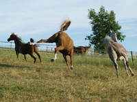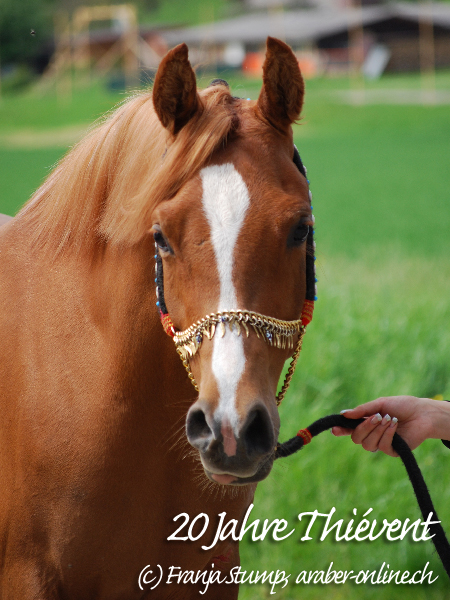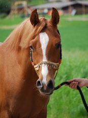 Popitka's erste Lebenstage als "Frühchen" waren äusserst kritisch - bange 24 Stunden lang war ungewiss, ob sie überleben würde - doch konnte sie Dank dem grossartigen Einsatz der Tierklinik Leimental (Dr. Verena Bracher und Dr. Thomas Stohler) gerettet werden. Heute ist sie zu einem sehr athletischen und ganggewaltigen Powerpaket herangewachsen, ist sehr korrekt und kräftig gebaut und dennoch ein typvolles Stutenmodell mit viel Ergeiz und Elan unter dem Sattel. Immer wieder verblüfft uns "Popi" mit ihrer Intelligenz, Cleverness und lustigen Einfällen. Sie ist Rishah's letztes Fohlen und Didier's Liebling und persönliches Reitpferd.